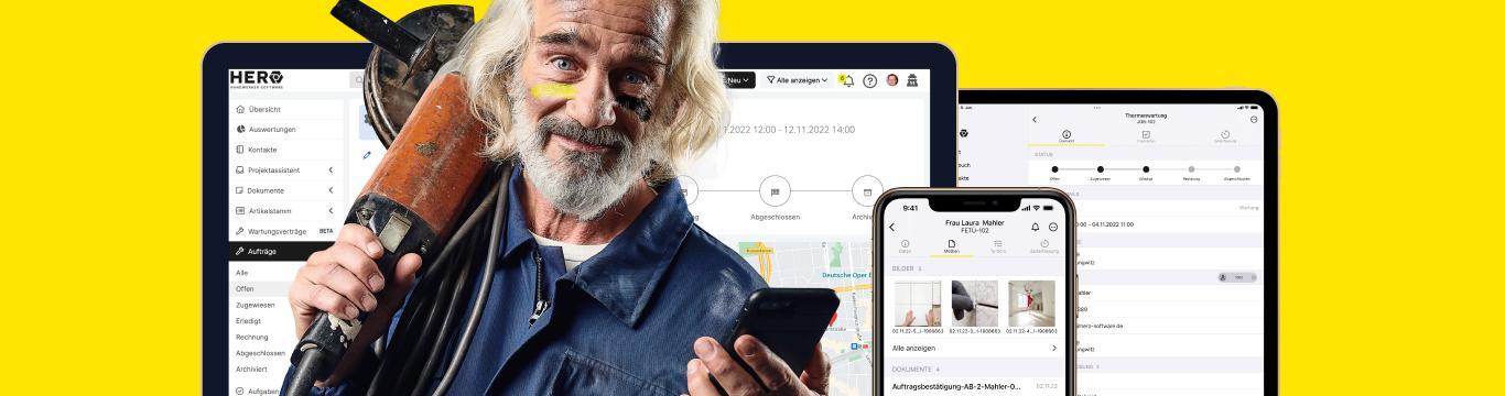 HERO è il tuo software per artigiani per gestire gli ordini online su cloud e tramite app. Con HERO, il programma di fatturazione, l’agenda di cantiere, numerose interfacce e funzioni sono sempre a tua disposizione in ufficio e in cantiere. Per ogni mestiere e settore.